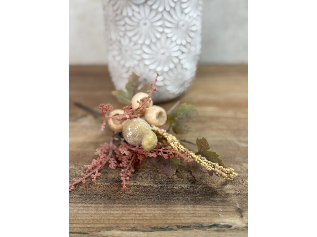 Nádherná jesenná vetvička s tekvičkou a jesennými plodmi a vetvičkami. Vetvička je jemných pudrových farbách.