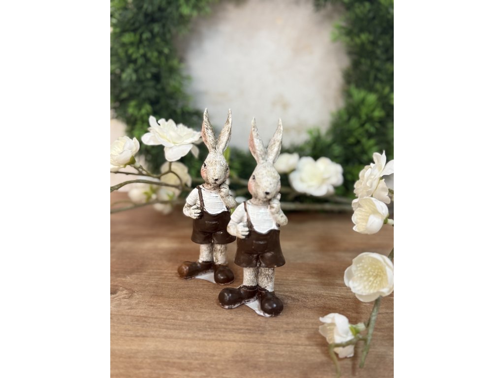 Krásna Veľkonočná ozdoba znázorňujúca zamysleného zajka. Zajac je bielej a hnedej farby. Je dokonalým doplnkom Vašej Veľkonočnej výzdoby. Svojou veľkosťou je vhodný najme do aranžmánov. Vyrobený je s polyresinu.