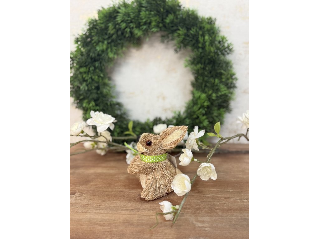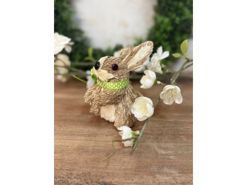 Krásna Veľkonočná ozdoba znázorňujúca sediaceho zajka. Zajko je vyrobený s prírodného materiálu. . Je nádhernou dekoráciou na Vašu parapetu alebo na dotvorenie aranžmánu.
